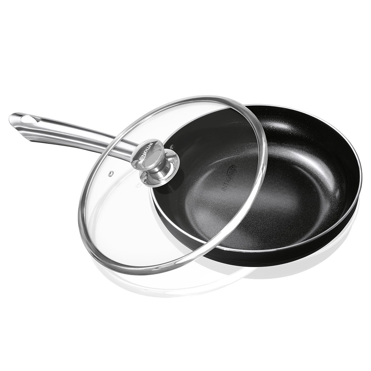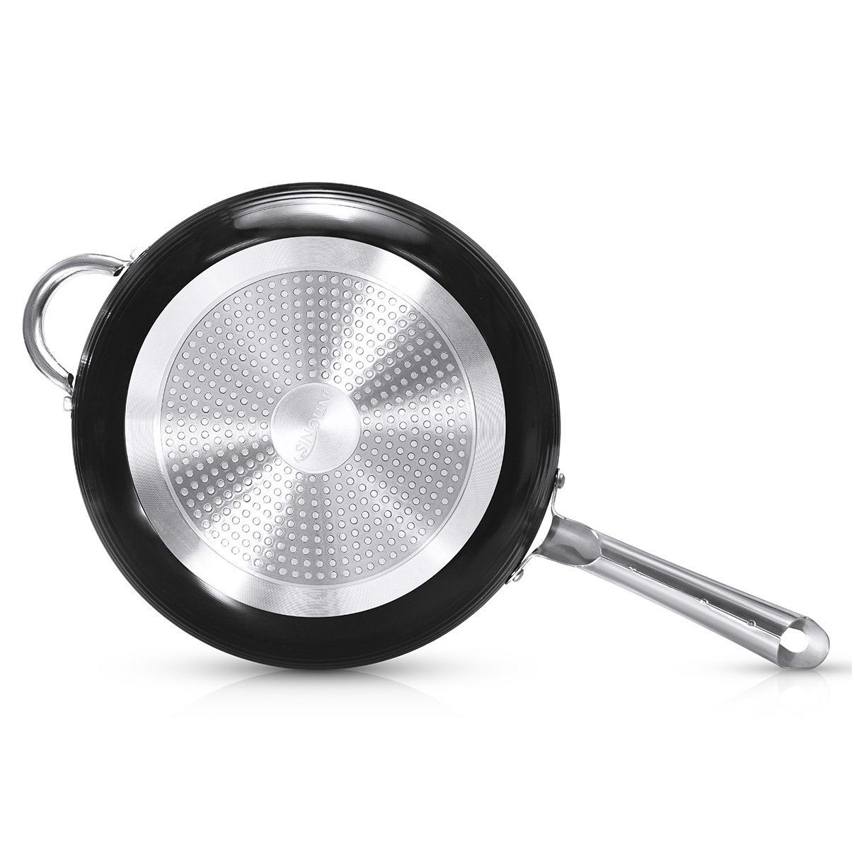 - HEAVY-DUTY COOKWARE – Made with durable, reliable, and top-notch Aluminium Alloy & stainless steel Sandwiched, our frying pan with lid will last your kitchen a long time. Corrosion, abrasion, or rust don’t stand a chance!