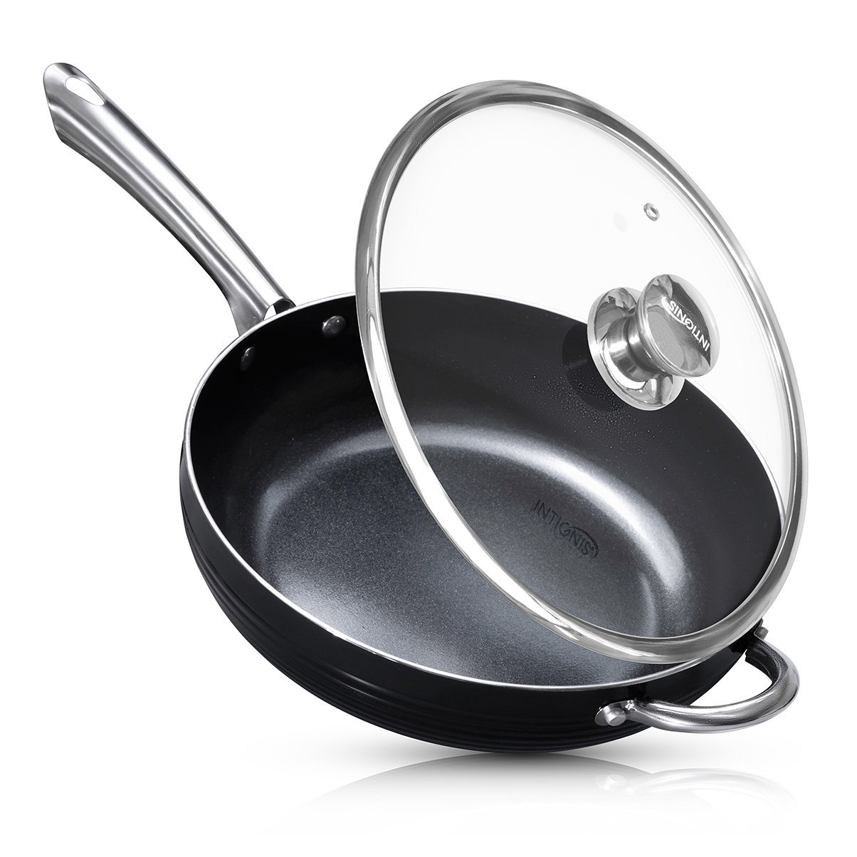 - GREBLON NON-STICK TECHNOLOGY – Ultra Durable GERMAN Greblon Ceramic Reinforced Super Non-stick Coating, Excellent balance of safety, Elegance and incredible Durability. Big Capacity, PFOA Free